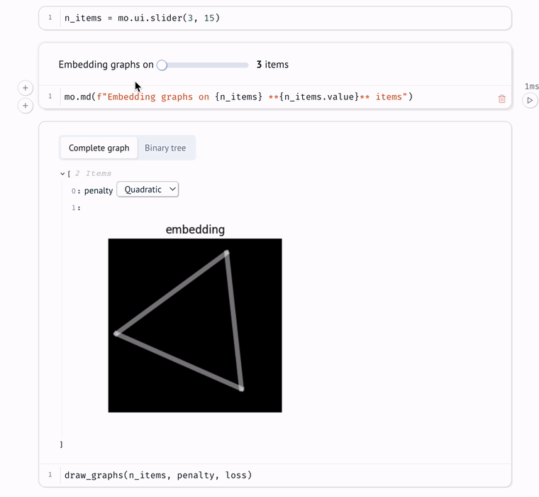 Unlike Jupyter widgets, marimo’s interactive elements are automatically synchronized with the Python kernel: no callbacks, no observers, no manually re-running cells.