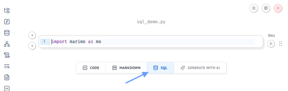 marimo lets you can mix and match Python and SQL: Use SQL to query Python dataframes (or databases like SQLite and Postgres), and get the query result back as a Python dataframe.